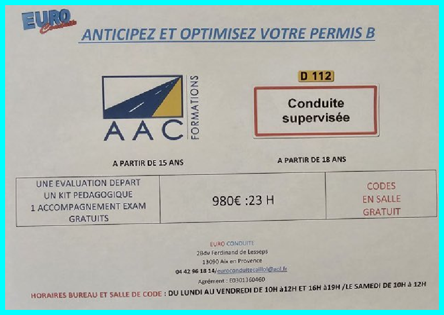 E-mail: euroconduitecaillol@aol.fr?subject=Renseignement permis Création, publication, gestion,  www.oeil2aix.fr
